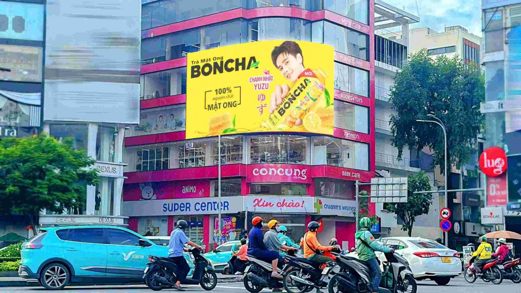 Nằm tại giao lộ lớn, màn hình sử dụng module LED ngoài trời với độ sáng cao và khả năng hiển thị tốt từ nhiều góc nhìn.