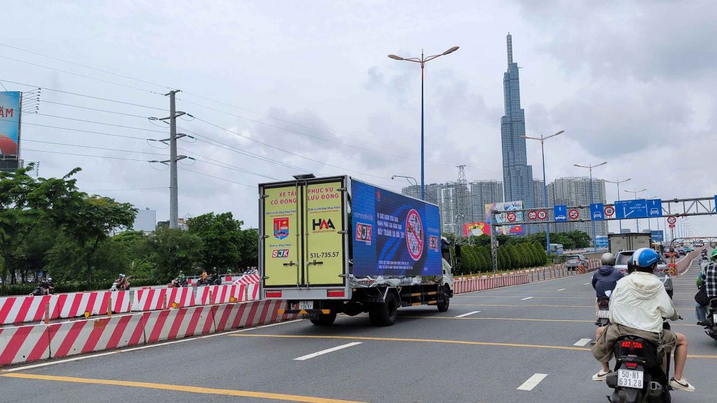 Màn hình LED xe tải là hình thức quảng cáo ngoài trời sử dụng xe tải được gắn các màn hình LED cỡ lớn ở hai bên hông và/hoặc phía sau xe. Đây là một phương tiện truyền thông di động hiện đại, nổi bật nhờ khả năng hiển thị hình ảnh động, video sinh động và có thể di chuyển đến nhiều khu vực khác nhau, đặc biệt là các khu vực nội khu như Vinhomes Central Park, Khu đô thị Sala… LED xe tải có thể đỗ tĩnh trong các sự kiện hoặc chạy linh hoạt trên nhiều cung đường để tăng độ phủ, trở thành công cụ marketing mạnh mẽ trong các chiến dịch activation, truyền thông cộng đồng, ra mắt sản phẩm hoặc sự kiện đặc biệt.